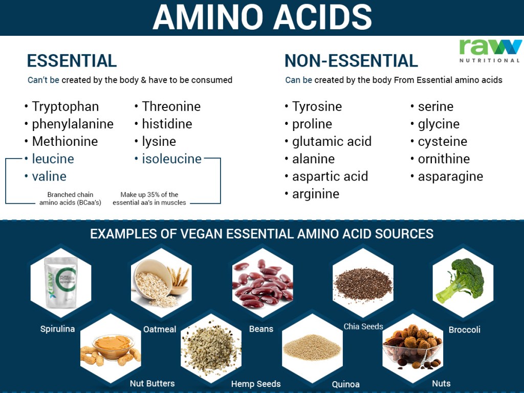 20 axit amin mà cơ thể bạn cần có thể được chia thành hai loại riêng biệt: axit amin thiết yếu và axit amin không thiết yếu.